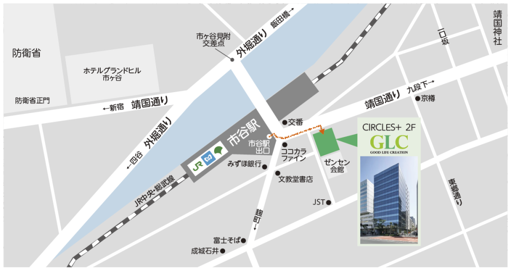 アクセス | [交通機関] JR中央・総武線....................「市ケ谷」駅 都営地下鉄新宿線 ..............「市ケ谷」駅 東京メトロ有楽町線・南北線...「市ケ谷」駅 より、各徒歩1分 |